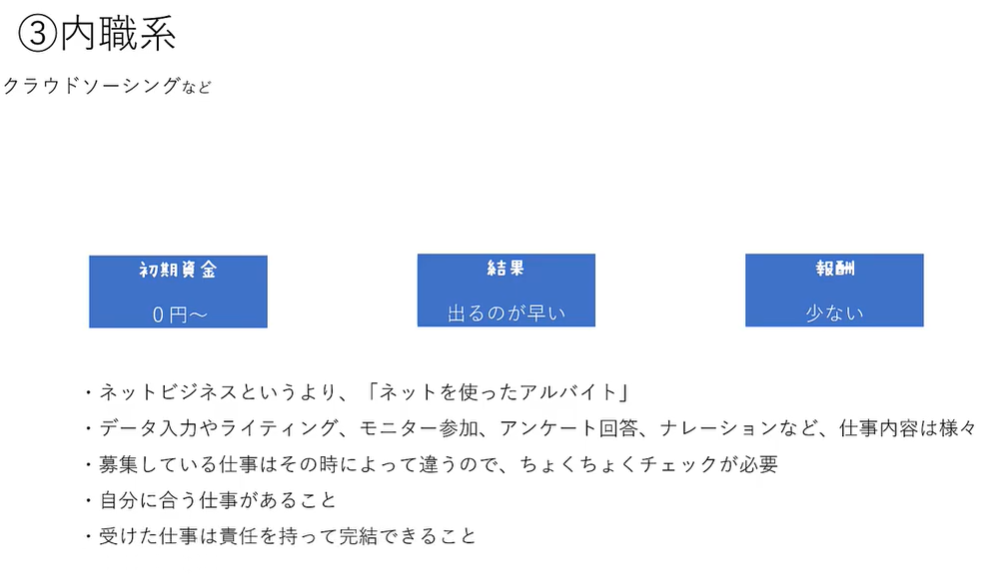 ネットビジネスの初期資金を稼ぐのに内職系もよいでしょう。
