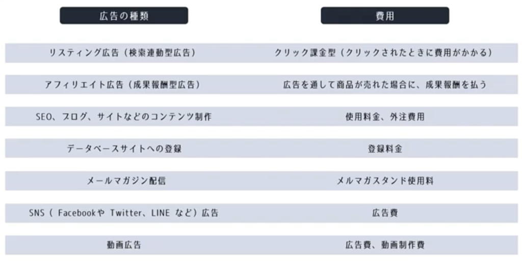 インターネットでの広告と費用について